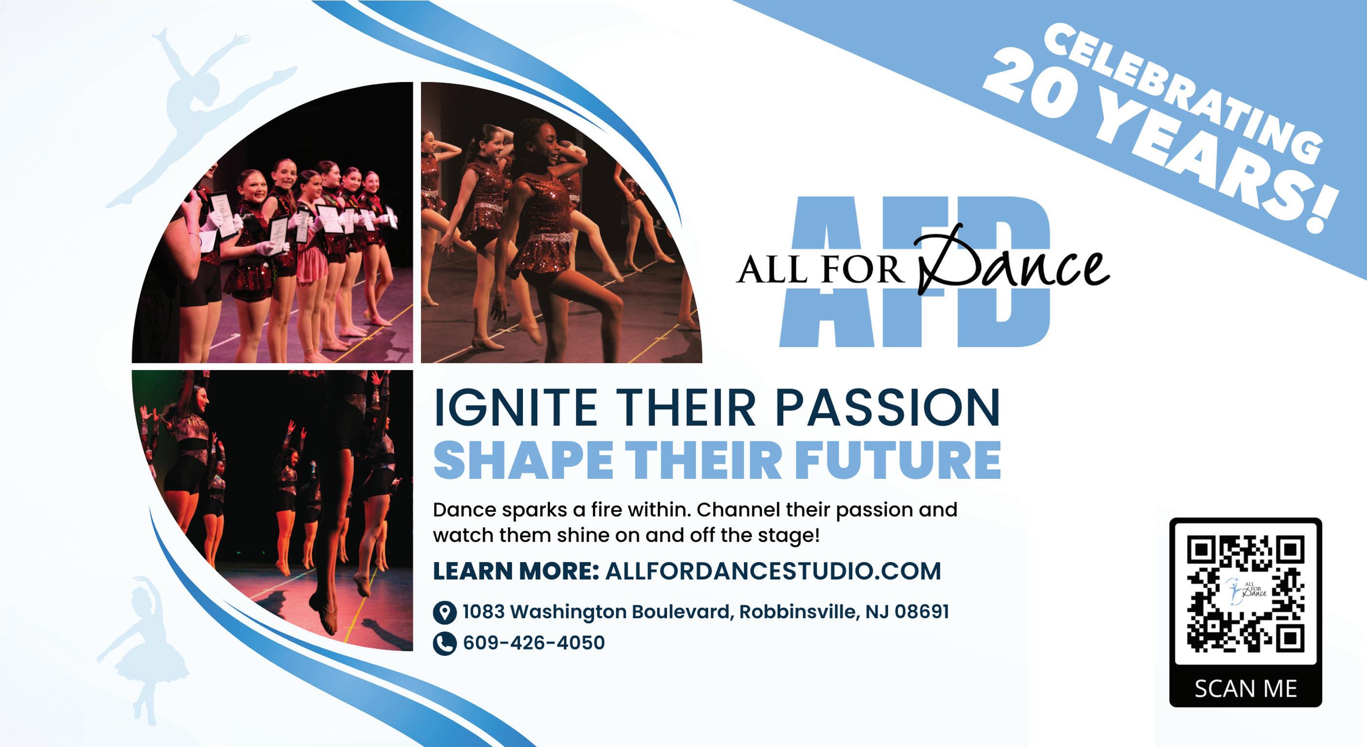 In June, Robbinsville Mayor Dave Fried and Robbinsville Township Council presented All for Dance with a proclamation to recognize their 20th year as an impactful and respected business in the community. The gesture was particularly meaningful for Coolidge and Yablonowitz, who have felt at home since the first day their studio opened Robbinsville.