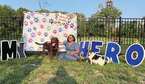 Mayor Patricia Hendricks Farmer and her dog, Alfred, at the grand opening of the new Hero Dog Park in Lawrence Township’s Hamnet Memorial Park on Aug. 15, 2024.