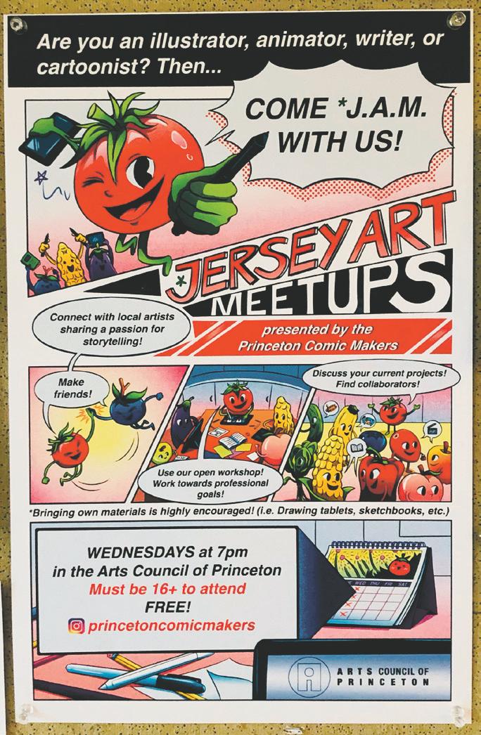Jersey Art Meetups take place on Wednesdays from 7 to 9 p.m. at the Arts Council of Princeton, 102 Witherspoon Street.