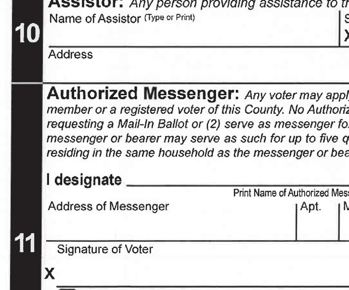 • The name, address, and signature of any person who has assisted you to complete the mail-in ballot application must be provided on the application, and you must sign and date the application.