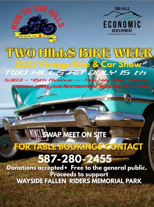 The 16th Annual Run to the Hills Memorial Rally and Bike week will be once again taking place in one of Canada’s Most Rider Friendly Communities … Two Hills, Alberta. This thriving little community is also home the Wayside Fallen Riders Memorial and Park , dedicated to the memory of all fallen motorcyclists.