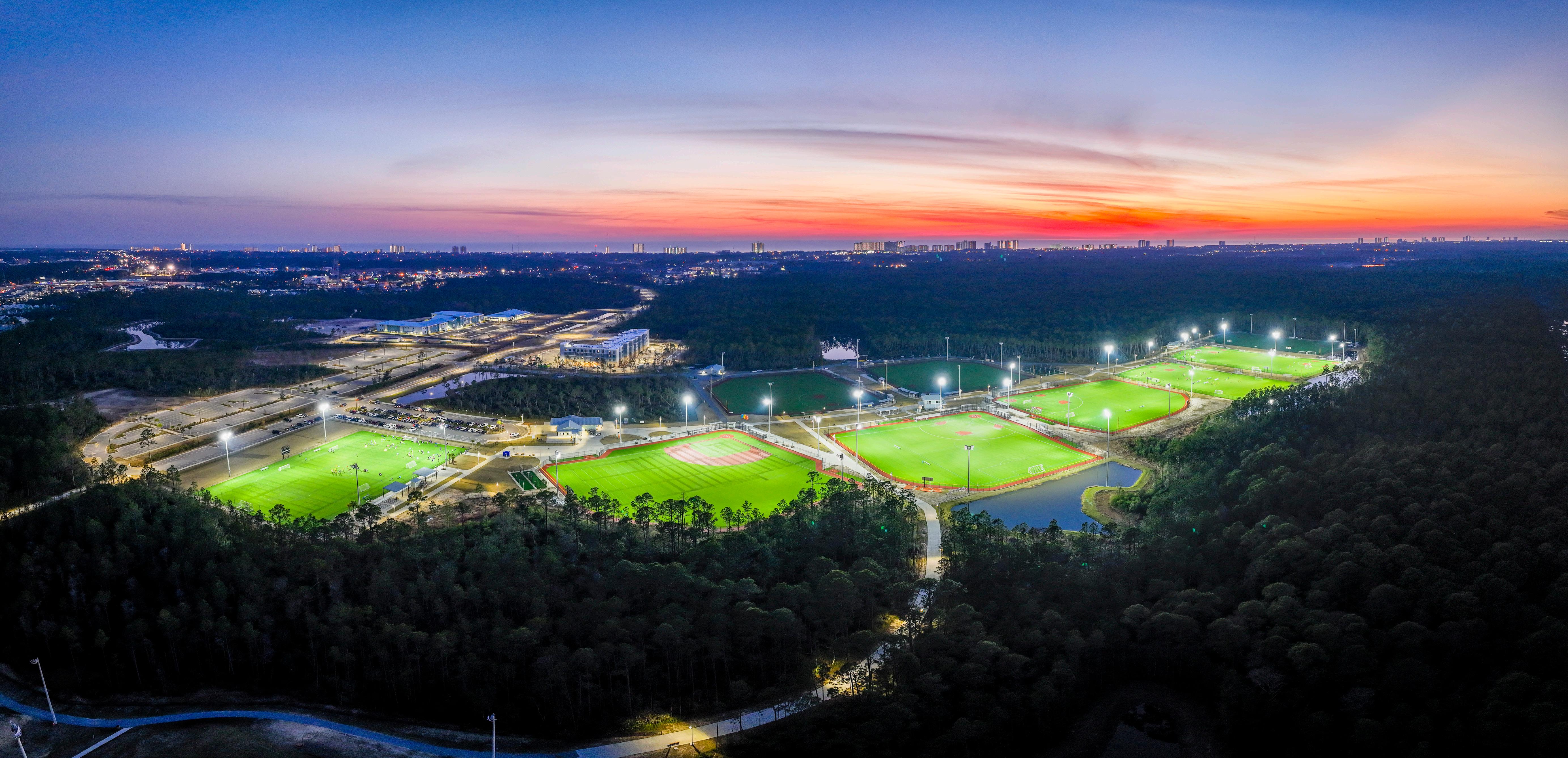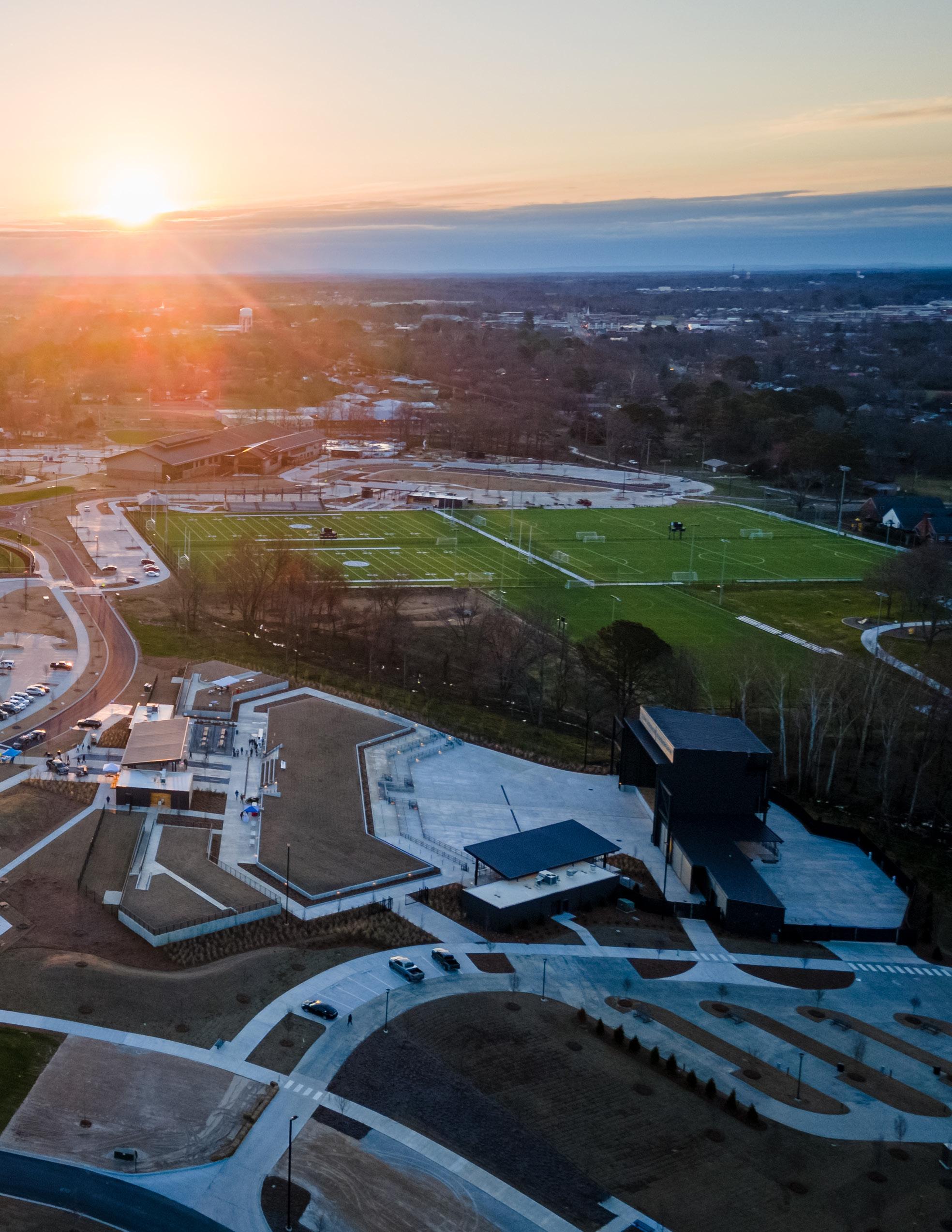 There’s a dramatic shift in how sports facilities impact communities taking place across the country. There may be no better example of this movement than in Albertville, Alabama, part of Marshall County. The city, with a population of 26,000 people, is home to Sand Mountain Park & Amphitheater, a 130-acre, state-of-the-art complex that provides elite-level athletic facilities, family-friendly public recreational spaces, and live entertainment. The