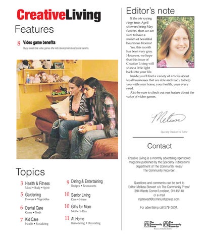 Contact Page 8 Creative Living is a monthly advertising-sponsored magazine published by the Specialty Publications Department of The Community Press/ The Community Recorder.