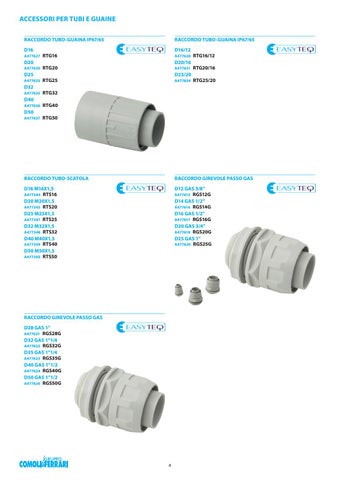 RACCORDO GIREVOLE PASSO GAS D28 GAS 1” A477621 RGS28G D32 GAS 1”1/4 A477622 RGS32G D35 GAS 1”1/4 A477623 RGS35G D40 GAS 1”1/2 A477624 RGS40G D50 GAS 1”1/2 A477626 RGS50G