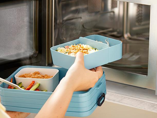 Lunchbox „Bento” der Marke Mepal. Die Lunchbox ist mit zwei separaten Fächern und einer zusätzlichen Box mit Gabel ausgestattet. Bento ist robust und verfügt über einen praktischen Verschluss. Der Deckel schließt perfekt und ist mit einem Dichtungsring versehen, damit der Inhalt lange frisch bleibt. Die Bento-Schalen in der Lunchbox sind mikrowellenfest (ohne Deckel). Ein hochwertiges Qualitätsprodukt. Fassungsvermögen 900 ml. Geeignet für bis zu 4 Butterbrote. BPA-frei und für Lebensmittel zugelassen. 2 Jahre Mepal Herstellergarantie. Made in Holland. Maße: 18,5 x 12 x 6,5 cm. 325 g.