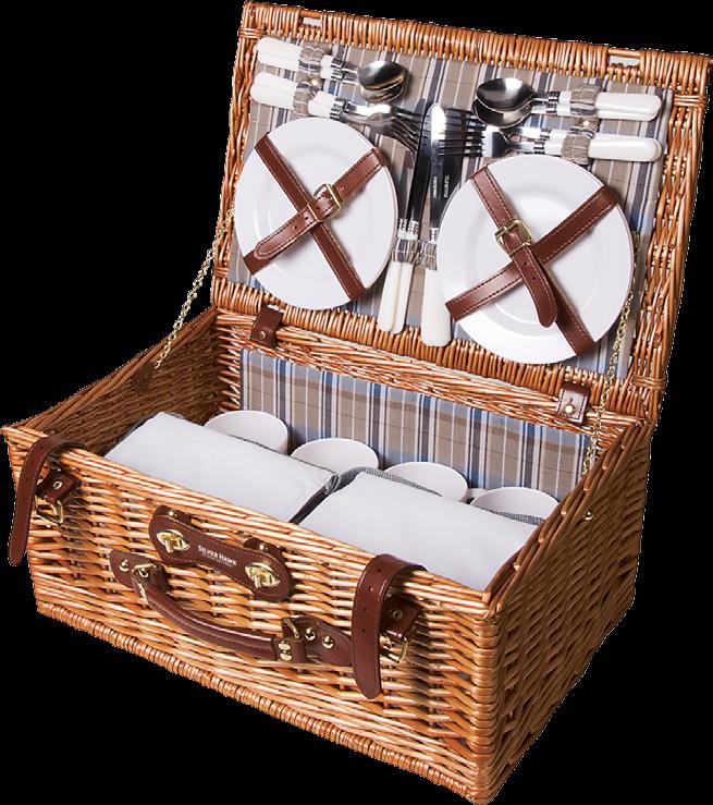 Picknickkorb aus Weidenholz mit Picknickaccessoires für 4 Personen: 4 Keramikteller, 4 Kunststoffbecher und EdelstahlBesteck. Inkl. 2 herausnehmbaren Kühltaschen. Maße: 47 x 20,5 x 30,5 cm. Pro Stück in einer Verpackung. 2420 g.