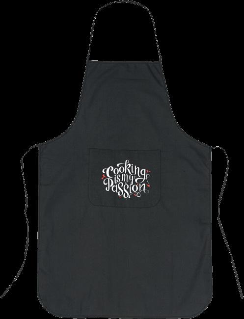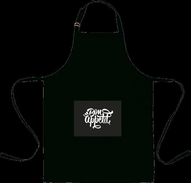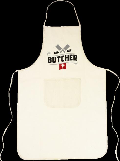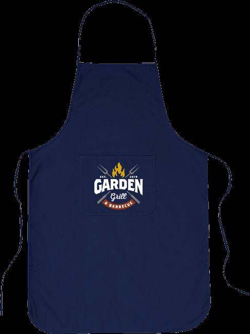 Schürze aus 100 % Baumwolle (180g/m²). Mit aufgesetzter Tasche. Das Umhängeband kann mit einer Kunststoffschnalle eingestellt werden. Maße: 89 x 66 cm. 142 g.