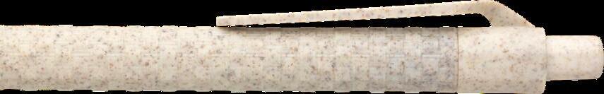 Umweltfreundlicher, blauschreibender Kugelschreiber, hergestellt aus 60% Weizenstroh und 40% ABS. Griff, Clip und Druckknopf sind aus den Resten geernteter Weizenstängel gefertigt. Mit großzügigem Clip für auffälligen Aufdruck. Maße: 13,8 x 1,2 x 1,5 cm. 8 g.