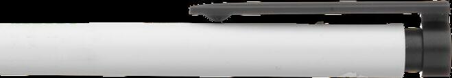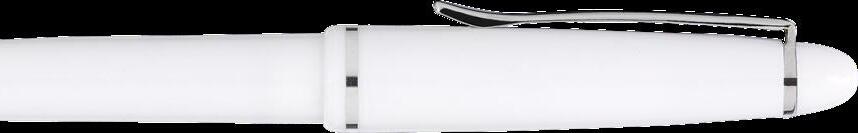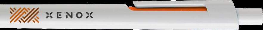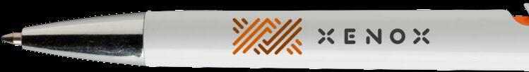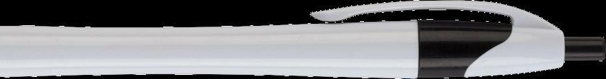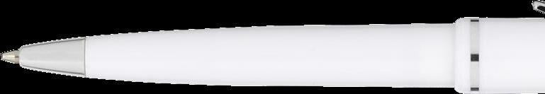 Blauschreibender Kugelschreiber mit weißem Halter aus einem Stück. Sehr gut geeignet für einen großzügigen Aufdruck. Auffälliges Detail: der farbige Clip. Maße: Ø 0,9 x 14 cm. 6,6 g.