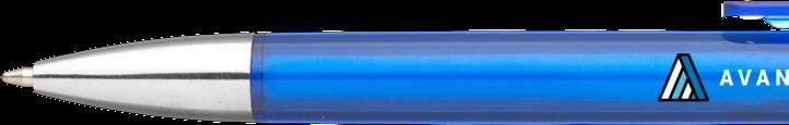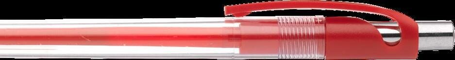 Blauschreibender oder schwarzschreibender Kugelschreiber mit transparentfarbener Gehäuse, grifffestem Vorderteil und Metallclip. Bitte geben Sie bei Ihrer Bestellung Ihre Wahl an. Maße: Ø 1,1 x 14,1 cm. 12 g.