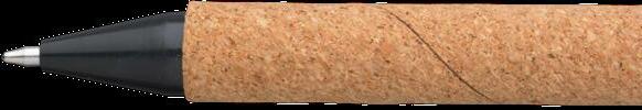 Umweltfreundlicher, blauschreibender Kugelschreiber mit Korkgehäuse. Die Spitze, die Oberseite, der Druckknopf und der Clip bestehen aus 50 % PP und 50 % Weizenstroh. Teilweise biologisch abbaubar. Maße: Ø 1,1 x 13,5 cm. 6,5 g.
