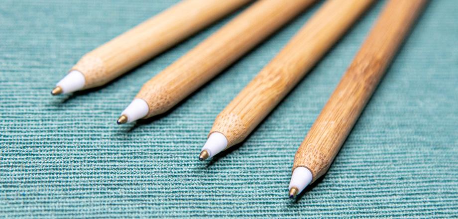 Bambus wächst schnell, wird häufiger geerntet und ist vollständig abbaubar. Die kompakte Faserstruktur macht Bambus hart, langlebig und beständig. Stifte mit Bambusgriff oder Bambusakzenten wirken natürlich und trendig. Bambus garantiert ein schönes und ökologisch verantwortliches Produkt.