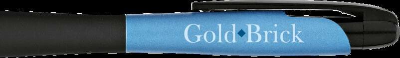 Kugelschreiber, blauschreibend mit mattschwarzem Gehäuse, markant gestylter Clip und Farbakzent in Metalloptik. Schlankes Design. Maße: Ø 1,1 x 13,9 cm. 8 g.