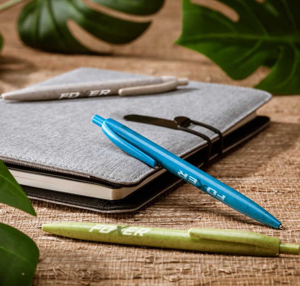 Stifte aus einer einzigartigen Materialkombination: 50 % PPKunststoff und 50 % Weizenstroh. Weizenstroh ist der Stiel, der nach der Ernte der Weizenkörner zurückbleibt und daher biologisch abbaubar ist. Diese Stängel, die traditionell als Abfall betrachtet wurden, werden zu Materialien und schließlich zu praktischen Produkten verarbeitet. Das Resultat: ein umweltfreundlicher Kugelschreiber mit einer fantastischen Optik!