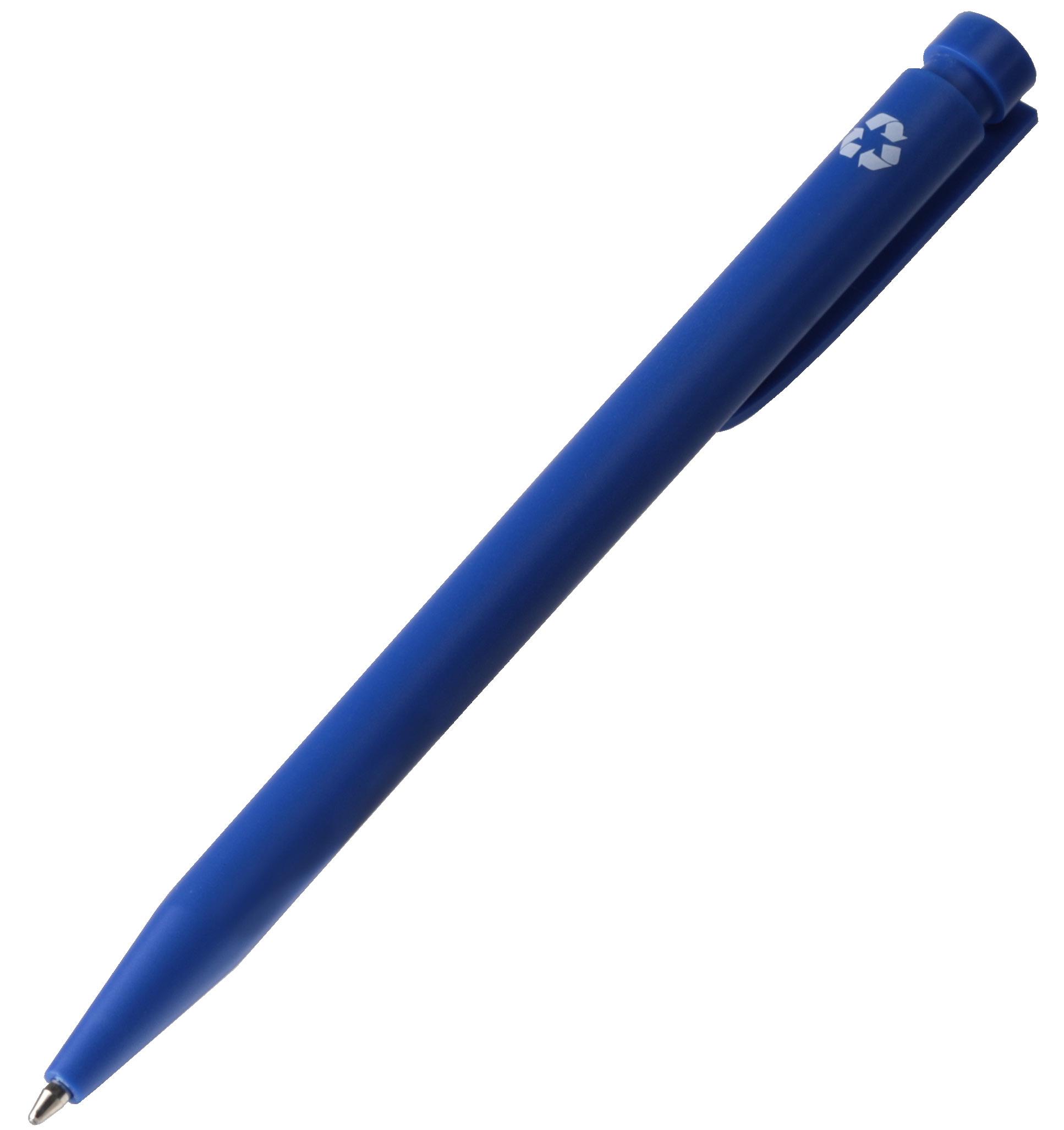 Umweltfreundlicher, blauschreibender Kugelschreiber, hergestellt aus 85% PostConsumer-recyceltem ABS aus Haushaltsgeräten. Der Altkunststoff wird sortiert und zu verwertbarem Schrott als neuem Rohstoff verarbeitet. Auf diese Weise werden etwa 70% des Energieverbrauchs im Vergleich zur herkömmlichen Produktion von neuem Kunststoff eingespart. Außerdem trägt es zur Verringerung der Müllberge bei. Der Stift ist standardmäßig mit dem Recycling-Symbol bedruckt. Maße: Ø 1,34 x 14 cm. 6,3 g.