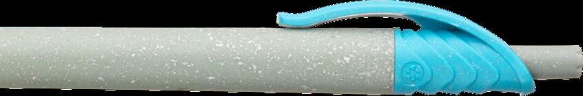 Umweltfreundlicher, blauschreibender Kugelschreiber aus 80% Weizenabfällen und 20% Kunststoff. Maße: 14,5 x 1,5 x 2 cm. 10 g.