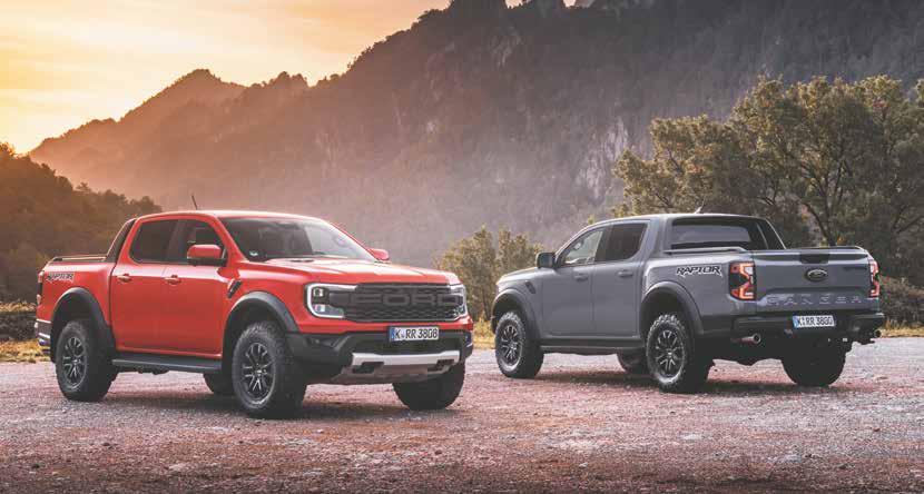 Matching the enhanced capability of Ranger Raptor is an all-new look that builds on the nextgeneration Ranger’s bold, strong style. Flared wheel arches and C-clamp headlight designs emphasise the pickup’s width, while bold F-O-R-D lettering on the grille and the tough separate bumper add more visual muscle.