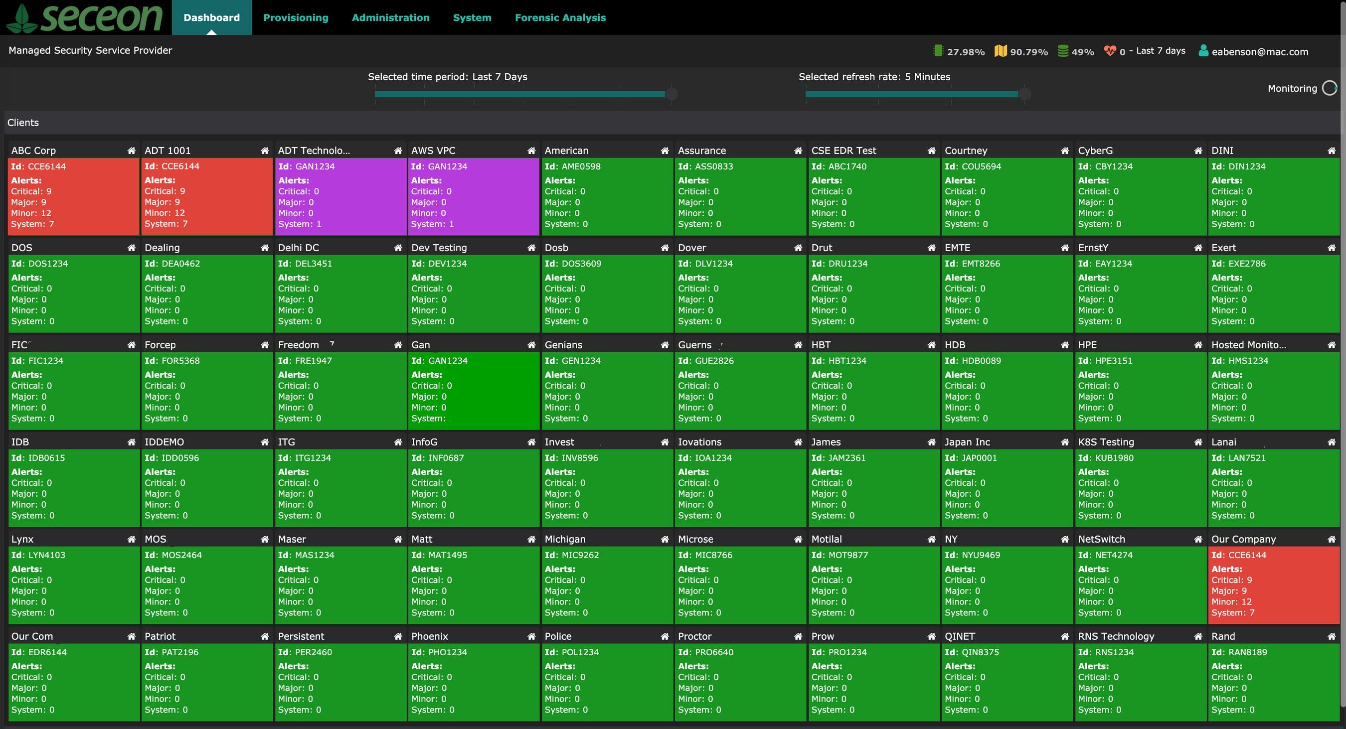 Get a summarized view of all your tenants (customers) in colored tiles – with green for ”zero” alerts, red for critical alerts, orange for major alerts and purple for system alerts- before stepping into each customer portal.