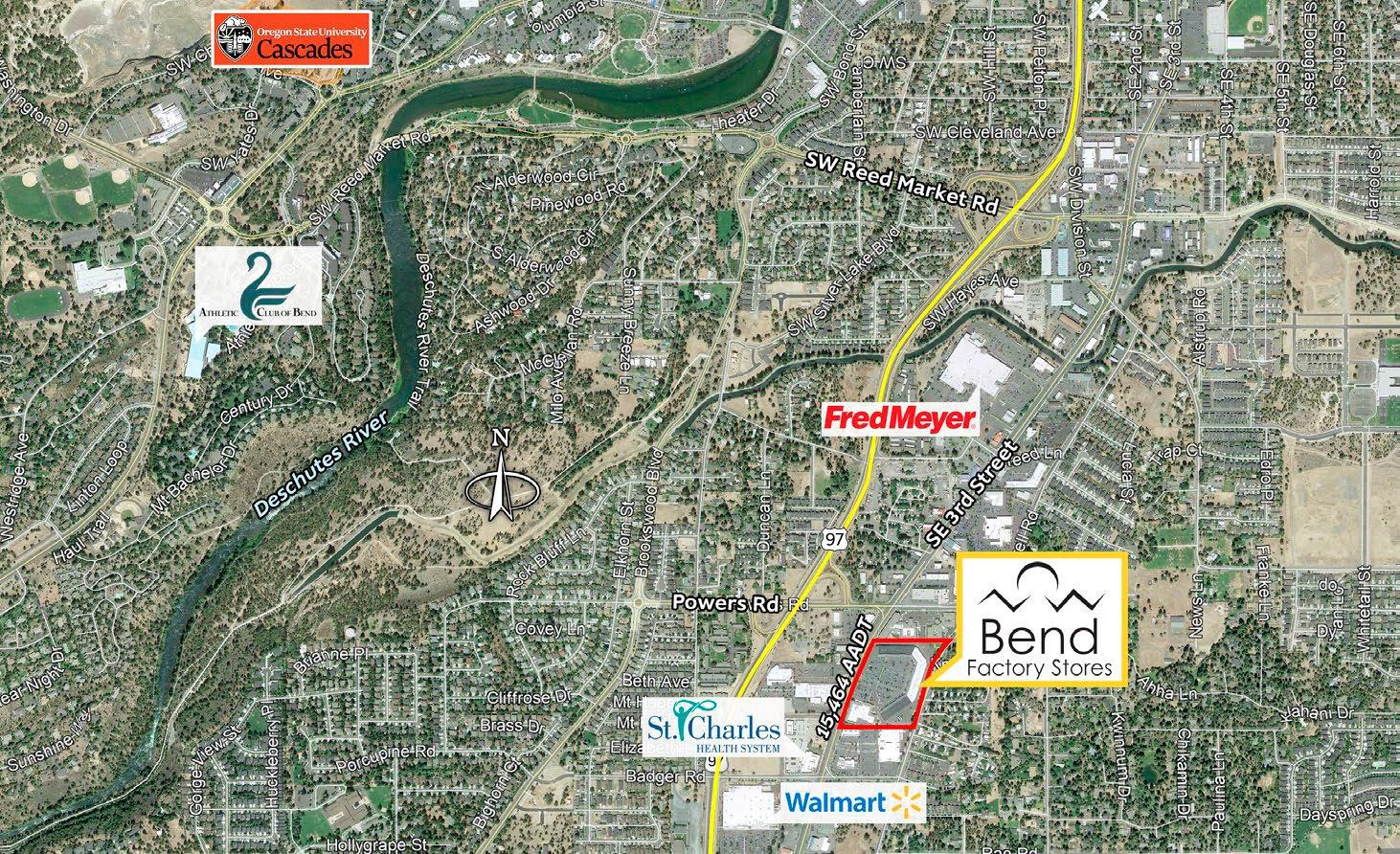 Bend Factory Stores is a tourist destination servicing over three million visitors annually. Visitors spend approximately $336.3 million in Central Oregon on travel spending (shopping, dining, entertainment, accomodation, and transportation - Dean Runyan Associates, Inc. 2021). This location also services Bend’s population of 102,000+ with a median income of $84,793. S Hwy 97 experiences traffic counts exceeding 21,819 vehicles/day (2022 TrafficMetrix®).