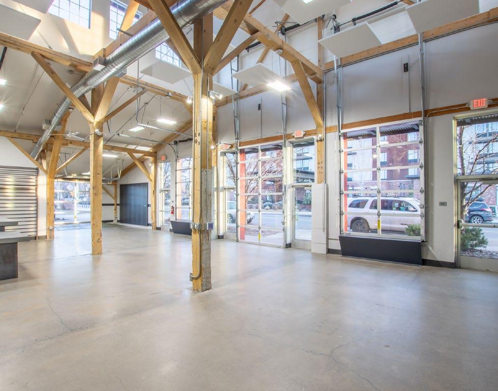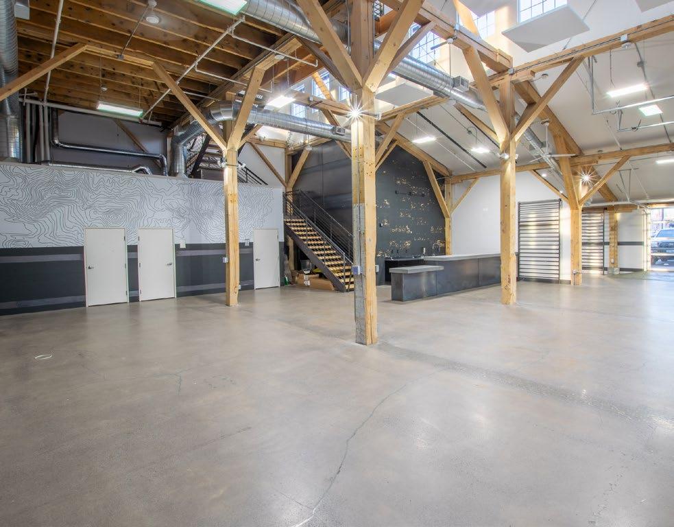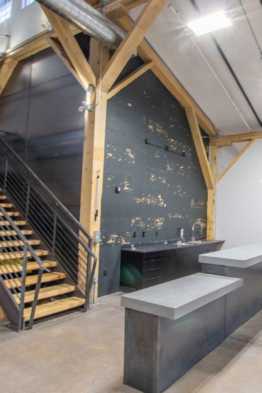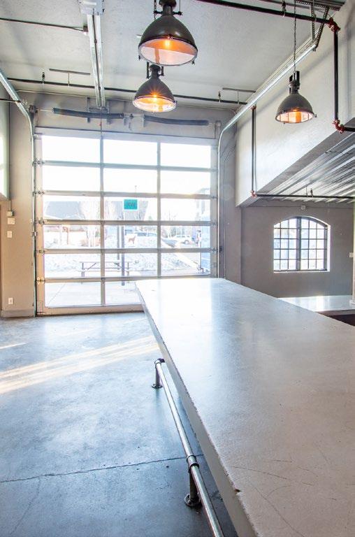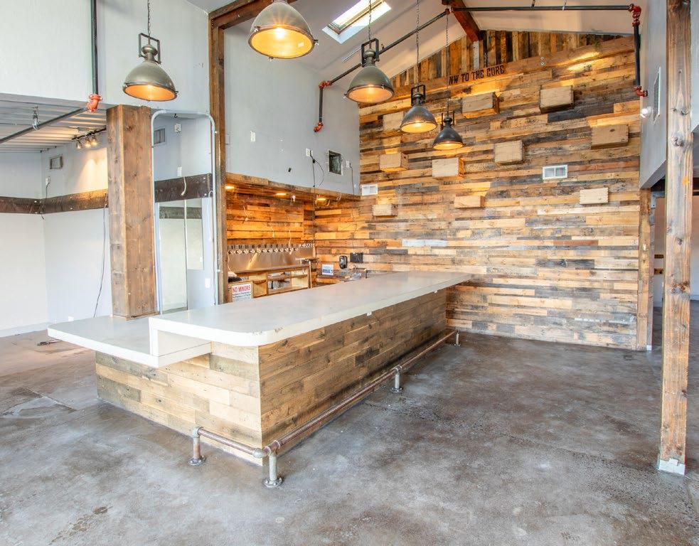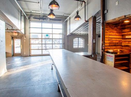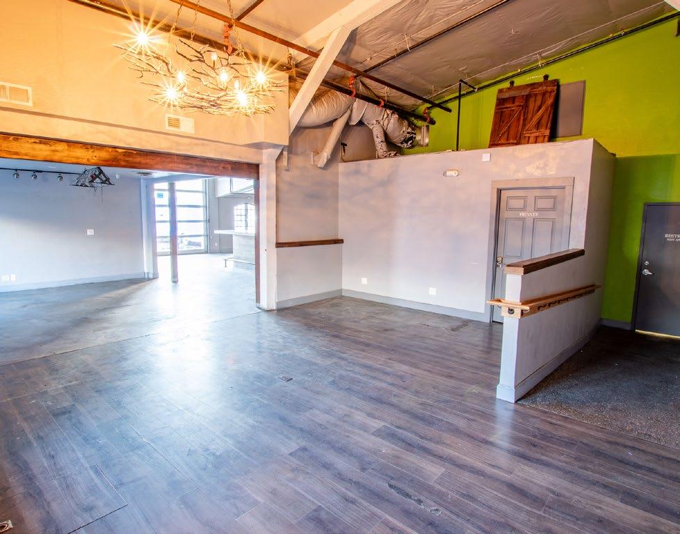 Ideal for a tasting room or restaurant, this suite features a stunning reclaimed barnwood accent wall with a matching bar, offering a rustic industrial vibe. The mostly open space includes a walk-in cooler and access to common restrooms, perfect for creating a unique guest experience.