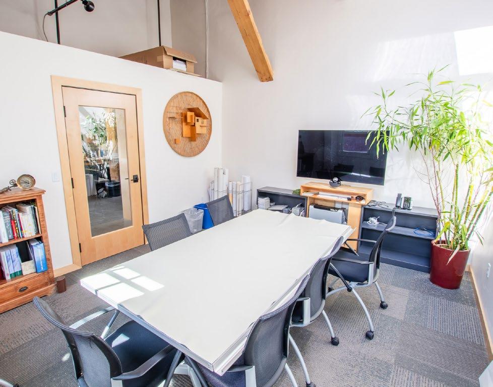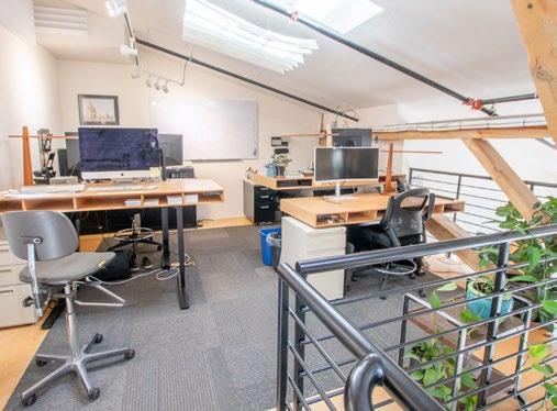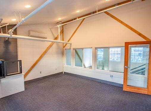This suite features an open retail/ office area, conference room, private restroom, and a small mezzanine.