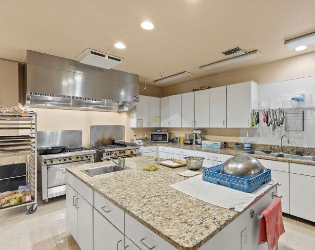 Residential areas, ADA restrooms, clinical offices, great hall, commercial kitchen, and additional outbuildings