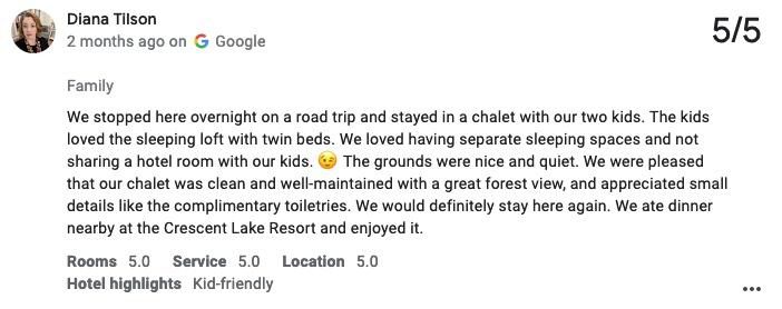 Situated in the town of Crescent Lake, the inn offers easy access to the Pacific Crest Trail and the Willamette Pass Ski Area. Its spacious rooms and well-equipped chalets, featuring wood burning fireplaces, contribute to a unique and inviting guest experience.