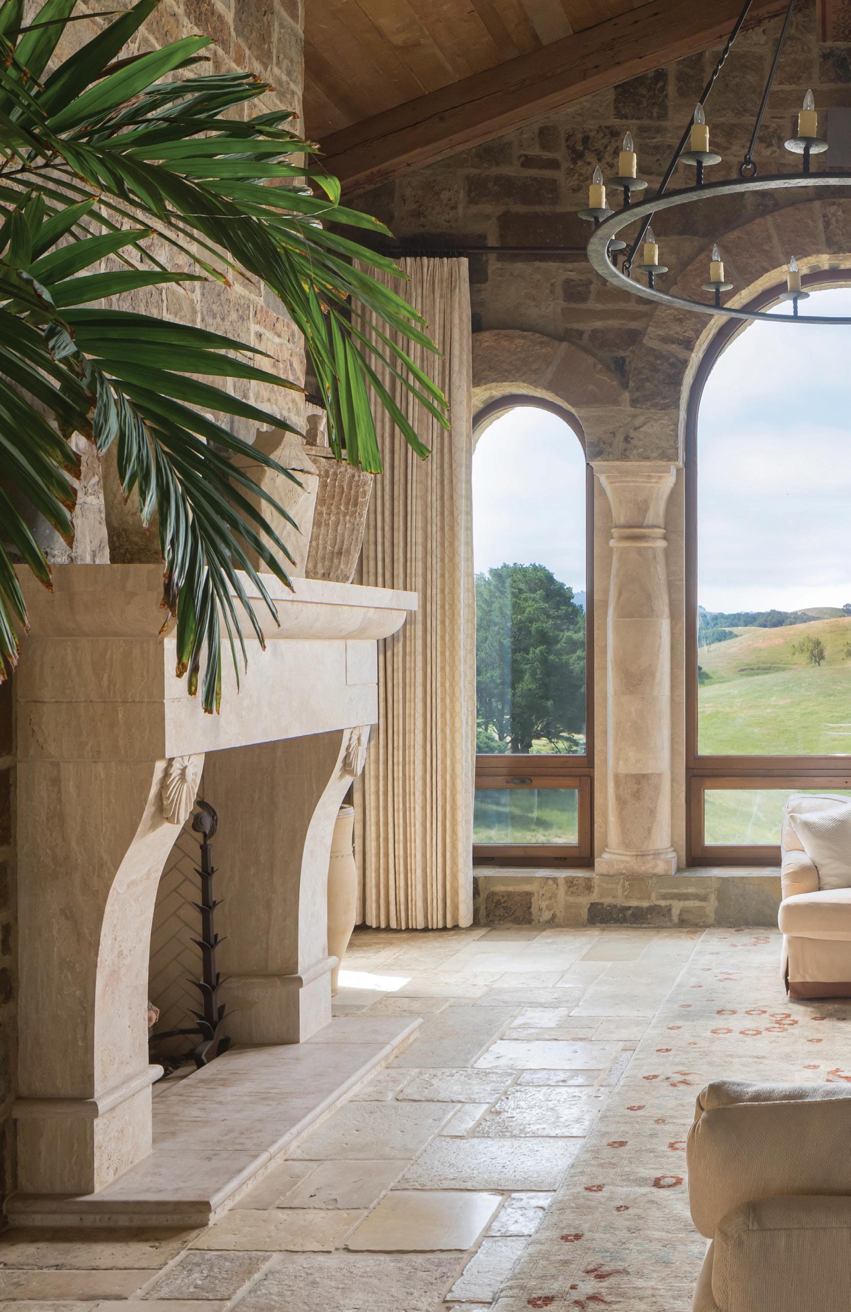 Upon entering the grand gates, one is enveloped by a sense of tranquility which invites an invitation to experience the epitome of luxurious living. The estate boasts meticulously manicured grounds designed with respect for the natural environment, a serene courtyard with water features, and an olive tree grove evoking the essence of the Tuscan countryside. Step inside and be captivated by the timeless elegance that permeates every corner of this incomparable retreat. From soaring ceilings adorned with hand-painted frescoes to the rich limestone floors harvested from a French monastery, the artisans created an ambiance of refined sophistication.