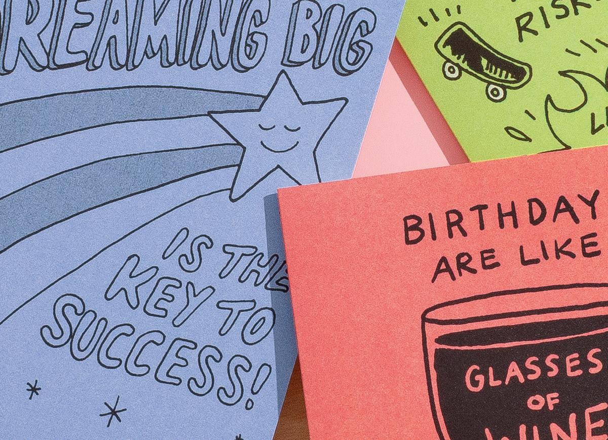 Our brand-new illustrated card line combines playful, clever jokes with colorful, quirky art. These cards offer more than just a laugh for you. In fact, they’re pretty Humor Us!