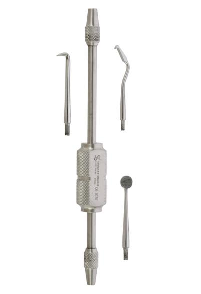 The new instrument for calculus removal around implants and restorations. PEEK with 30% carbon fibre and medical grade stainless steel.