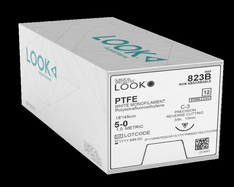 absorbable Monofilament Suture Features • Soft and supple material • Easy to handle • Good knot security • Minimal package memory BOX OF 12 $205.00 PTFE (Polytetrafluoroethylene) PTFE Undyed Monofilament Sutures