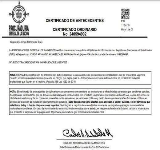 El señor JORGE ARMANDO ÁLVAREZ ASCANIO, identificado con cédula de ciudadanía No. 1094580692, certifica que: