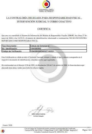 Después de realizar la verificación correspondiente ante los sistemas de información oficiales, la empresa COMPLEX TRADE S.A.S no registra antecedentes fiscales, sanciones, multas, ni procesos en curso registrados ante: