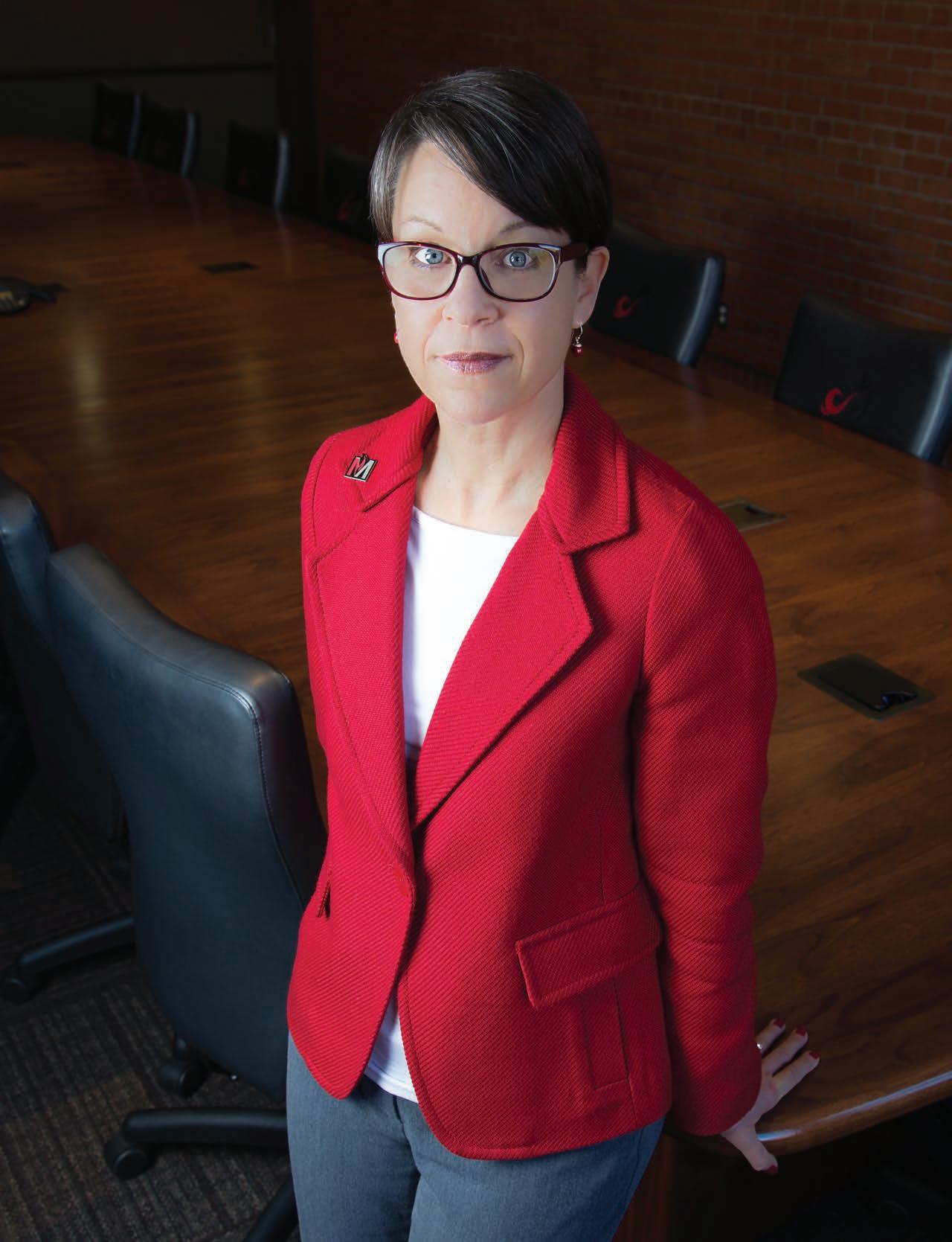 Dr. Anne Blackhurst, president of Minnesota State University Moorhead. After working as provost and senior vice president for academic affairs at MSUM for three years, Blackhurst accepted the role of president in July of 2014, and has assumed her responsibilities with enthusiasm, determination and a vibrant display of school spirit.