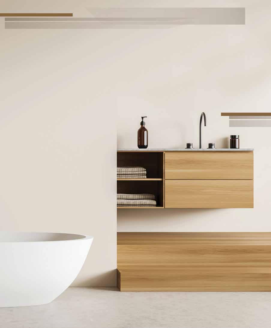 tub becomes the centerpiece, while surrounding details are selected to support its presence and create a harmonious, cohesive space.”