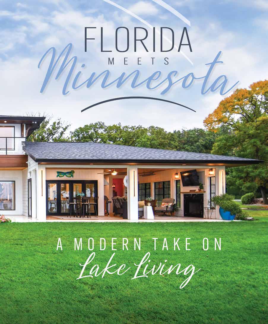 On Little McDonald Lake, Renee and Steve Anderson built a Florida-inspired modern lake home in 2022, moving in the following summer. Partnering with Mark Dobbelmann of Up Nort Home and Cabin Care, they envisioned a low-stress residence that captured sweeping views of the lake while seamlessly connecting indoors and out. Expansive bifold doors open the great room to a versatile three-season porch. The architecture pairs clean, contemporary lines with natural textures, balancing a bold flat-roofed garage and open floor plan with thoughtful details designed for effortless, everyday living. At 5,358 square feet—including the home and garage—the result is a modern retreat that feels both sophisticated and welcoming, ready for many lake memories to be made with family and friends.