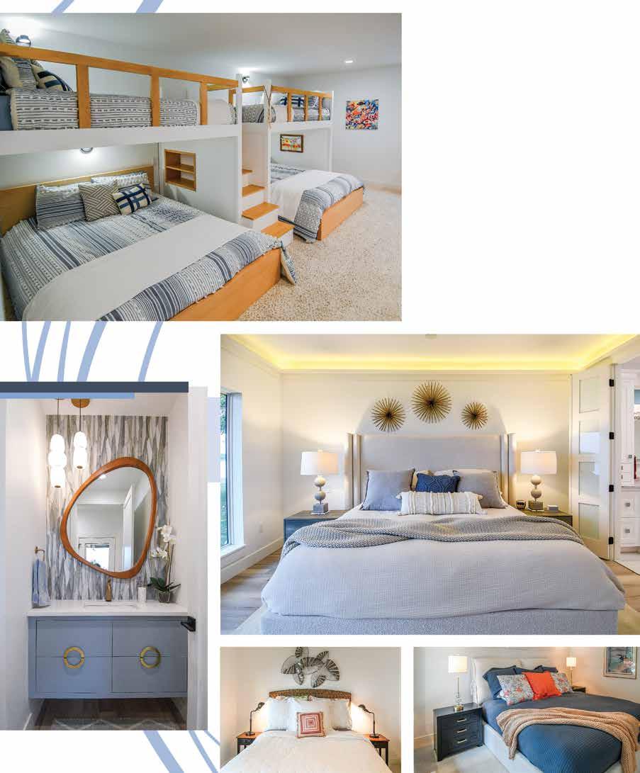 Renee wanted to make it a family home, since they have two grown kids with families of their own–and they have three granddaughters. “We made sure each had their own bedroom, bathroom and then there’s a big loft-like bedroom. It's where we've got bunk beds for the girls. There's also a loft sofa area at the top of the stairs for the girls to have a TV if they want their own place,” Renee said. “We've also got grandfurs–dogs and pets. We’re very much a pet family. I don’t want anyone to have to worry about dogs or kids running around in wet bathing suits.”