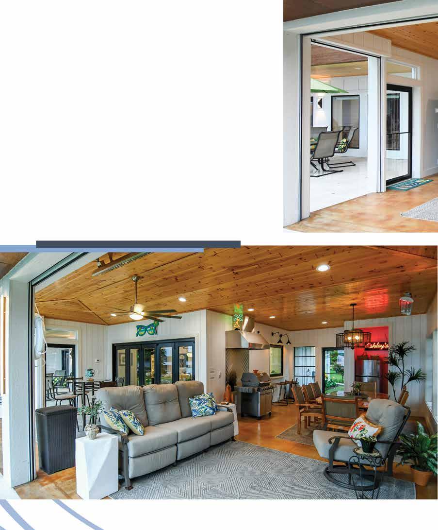 Outside, there is a patio off of the lake. “There’s a walk-in door where you can go across the hall into a bathroom. I didn’t want anybody who was coming out of the lake having to worry about changing clothes to go in and use the bathroom.
