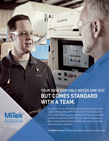 Our state-of-the-art saws include the technology to cut any truss or panel member with speed and precision. They also include an entire support team. Your MiTek Machinery Tech Reps are real people available on the phone, as well as on-site, ready to help keep your saws humming and your presses rolling. You might even consider Š 2016 MiTek, All Rights Reserved.