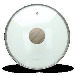 I coperchi della Linea Eco hanno un corpo in vetro trasparente con foro e bordo in acciaio. Grazie al vetro trasparente, questi coperchi garantiscono una cottura a vista e sono dotati di un pomolo con finitura soft touch efetto legno.