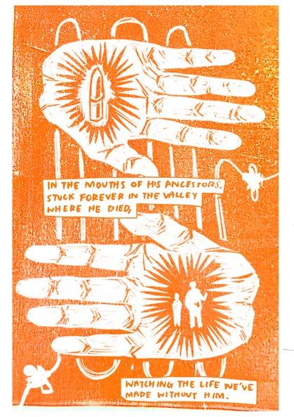 HODGES B’26 (she/her) is writing poems about memory on a blue sofa and forgets to turn on the light.