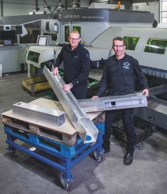werd gemaakt. ’Hier kunnen we met een supersonische lasersnijder kokers, buizen en open profielen snijden in alle denkbare vormen.’ Of in de andere dochteronderneming Conweld, waar complete machineframes worden gelast.