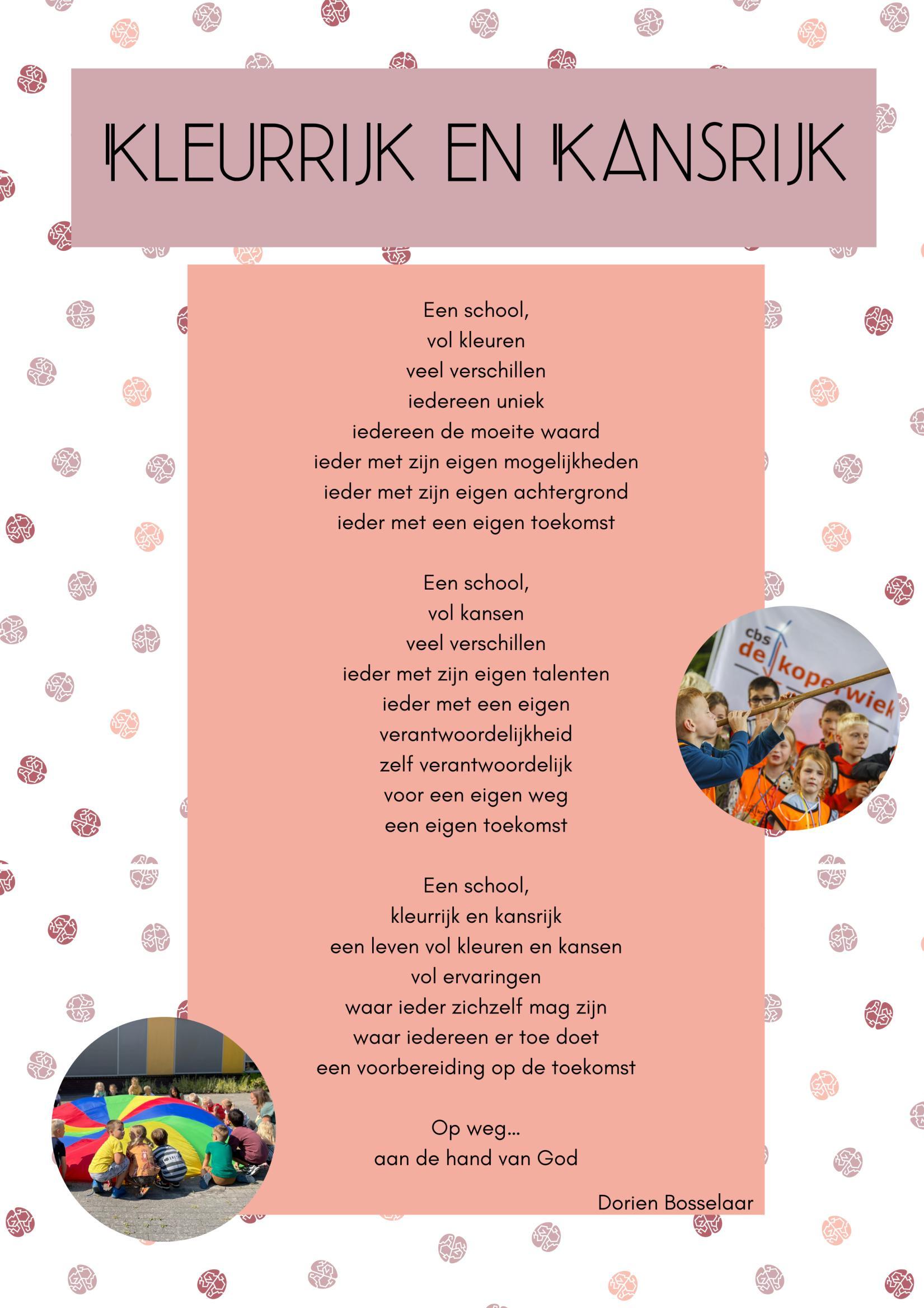 De Koperwiek is een christelijke basisschool, die open staat voor alle kinderen ongeacht levensbeschouwelijke of culturele achtergrond. De Koperwiek is een identiteitsrijke school. We zijn een plek waar kinderen elkaar ontmoeten en streven ernaar om een afspiegeling te zijn van onze hedendaagse, diverse samenleving. Door ontmoeting met anderen, leer je jezelf kennen. Wij geloven in de meerwaarde van ontmoetingen en gaan daarbij altijd op zoek naar de verbinding. cbs De Koperwiek is samen met ouders verantwoordelijk voor de identiteitsontwikkeling van kinderen. Onze kracht zit in het structureel aandacht geven aan de levensbeschouwelijke ontwikkeling van kinderen. Daarnaast stimuleren we ontmoeting met andere levensbeschouwelijke perspectieven dan het eigen perspectief.