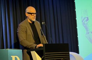 El Dr. Sergi Boada, president del COMT, durant la inauguració de la sessió del cicle “Debats en positiu” organitzat pel Diari de Tarragona a CaixaForum Tarragona.