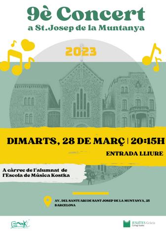 El proper 28 de març tindrà lloc el 9è Concert de l'Escola de Música Kostka al Santuari de Sant Josep de la Muntanya, un concert a càrrec de l'alumnat de l'escola de música