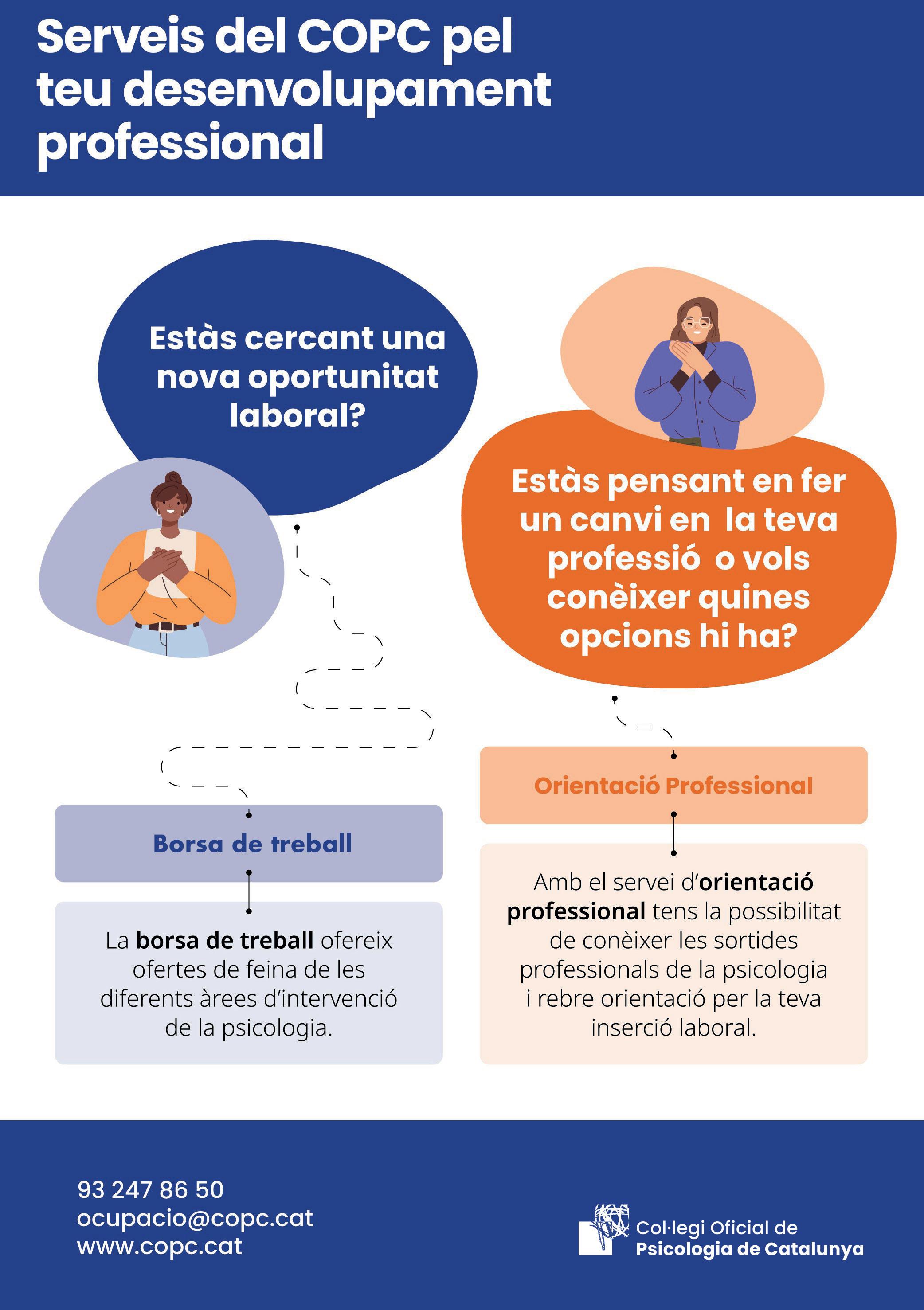 Taller pràctic d’orientació professional adreçat a persones interessades a treballar en l’àmbit de la psicologia a la província de Girona. S’hi presentaran eines, idees i recursos per afavorir l’ocupabilitat, es donaran a conèixer les oportunitats i recursos específics de la zona, i es fomentarà una visió ampliada de les sortides professionals en el sector de la psicologia a Girona.