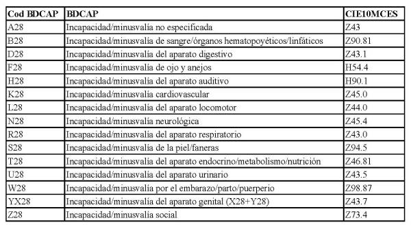 la seva identificació. Cal tenir especial atenció amb la discapacitat social que BDCAP defineix com a “habilitats socials inadequades, no classificades sota un altre concepte” i que no podem considerar sinònim de la discapacitat psicosocial de l’OMS. Entenem que probablement sigui un subconjunt. Amb aquest procediment els codis BDCAP seleccionats han estat:
