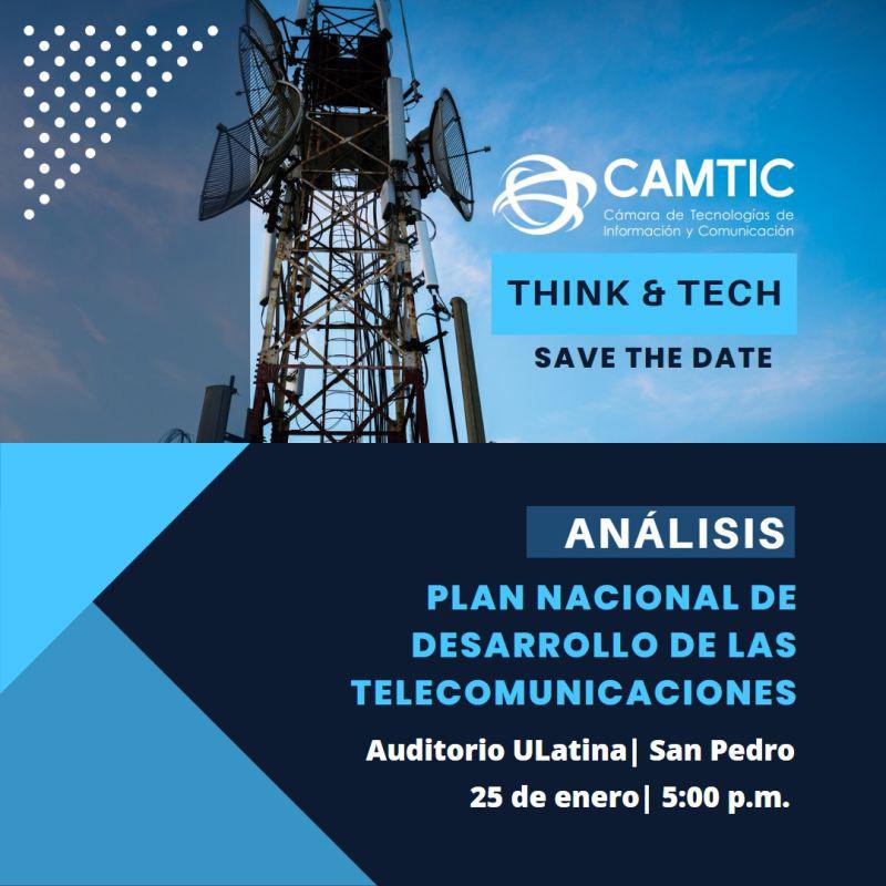 El próximo 25 de enero del 2023, inicia la programación anual de eventos con la entrega Think & Tech: Análisis del Plan Nacional de Desarrollo de las Telecomunicaciones de la Cámara de de Tecnologías de Información y Comunicación (CAMTIC).