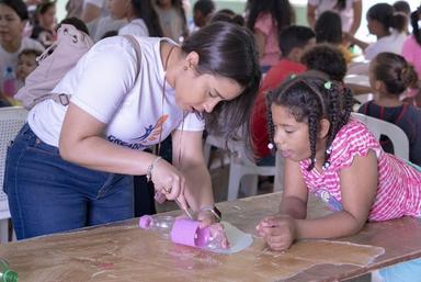 "Para nosotros colaborar con BANFONDESA ha sido una experiencia enriquecedora Ver a los niños realizando manualidades de materiales reutilizados, a la vez que los educamos sobre la importancia del cuidado del medioambiente y los derechos fundamentales de la niñez es realmente gratificante".