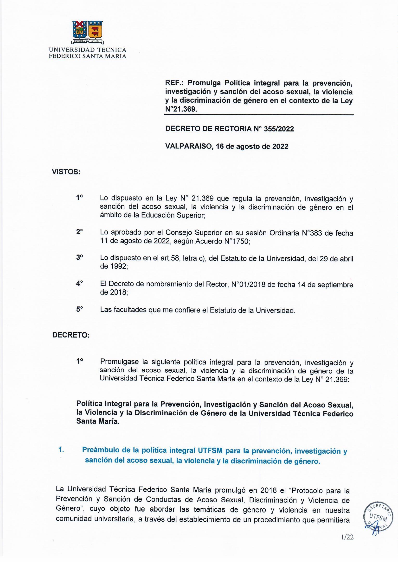 Decreto Rectoría 355/2022 by RREE USM - Issuu
